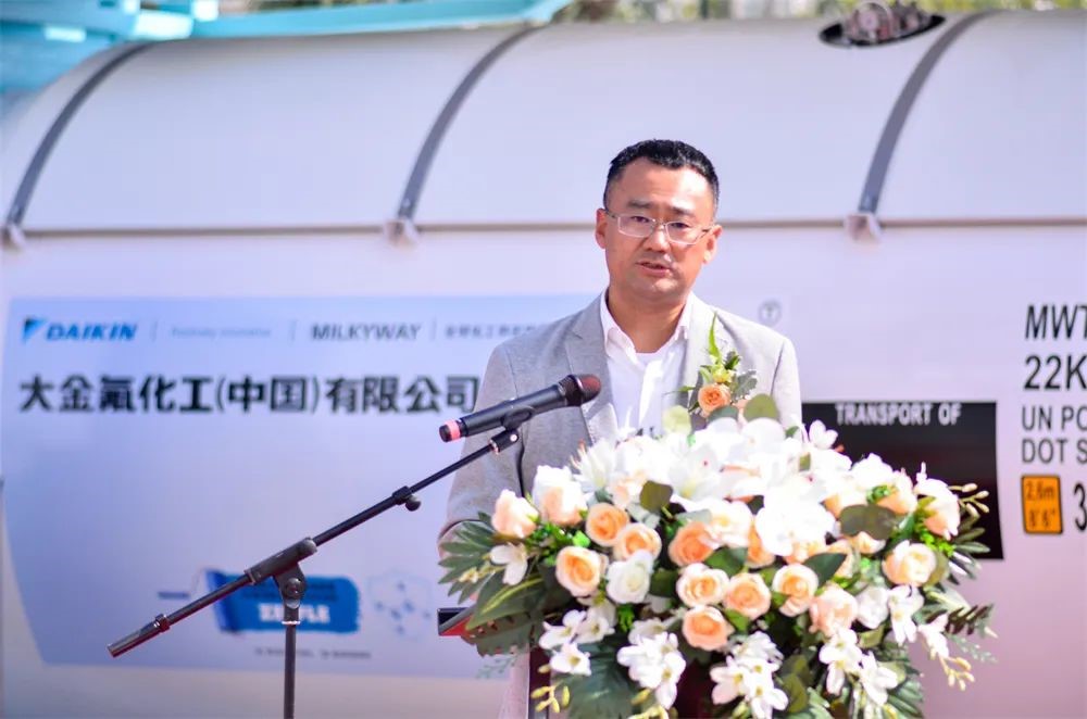 上午10點(diǎn)58分,下線儀式準(zhǔn)時(shí)開始,中集環(huán)科季國祥總經(jīng)理代表制造商致辭,他表示,密爾克衛(wèi)、大金氟化工、中集環(huán)科分別作為化工倉儲(chǔ)物流、精細(xì)化工、能源化工物流裝備領(lǐng)域的佼佼者,不忘各自肩負(fù)的使命和責(zé)任,敬畏環(huán)境,敬畏生命,在綠色發(fā)展、低碳發(fā)展、可持續(xù)發(fā)展方面取得了令人驕傲的成績(jī),作出了敢想敢為的表率。本次下線的氣體箱產(chǎn)品采用了創(chuàng)新的新材料、新工藝,在筒體和框架采用了大金氟化工新一代4F型高固體分、低VOC環(huán)保氟碳樹脂油漆,具有超長(zhǎng)耐候、優(yōu)良的防腐性能;同時(shí),罐內(nèi)也率先采用了氟盾水性漆,與傳統(tǒng)的鍍鋅工藝相比,不僅兼容性能更好,而且更加綠色環(huán)保,也便于日后維護(hù)。這些新技術(shù)的應(yīng)用淋漓盡致地體現(xiàn)了三家企業(yè)在追求綠色發(fā)展、低碳發(fā)展上相同的理念和作出的努力,中集環(huán)科非常榮幸未來繼續(xù)與密爾克衛(wèi)、大金氟化工一起成長(zhǎng),成為全球化工物流綠色發(fā)展、高質(zhì)量發(fā)展的倡導(dǎo)者和創(chuàng)新者。
