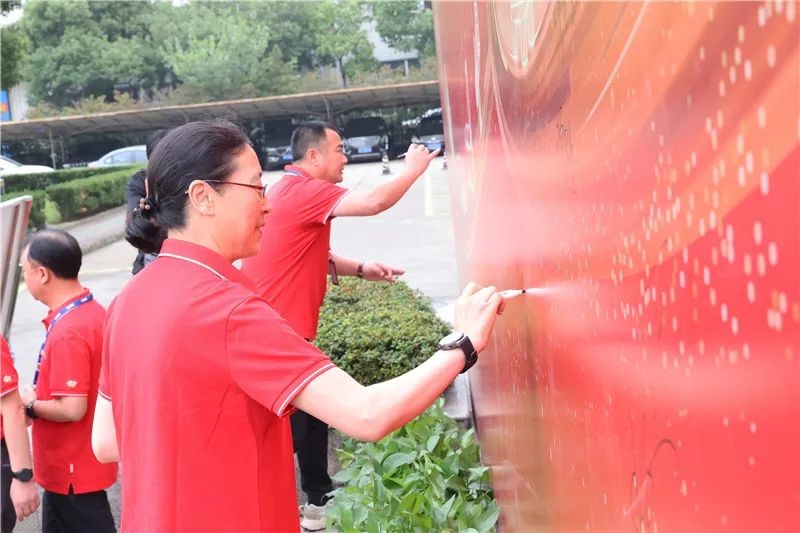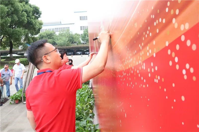 最后,南通中集兩板塊各公司管理部領(lǐng)導與員工在“中集日”主題背景板上簽名、合影留念,表達對中集集團、對公司未來發(fā)展的期許和祝福。